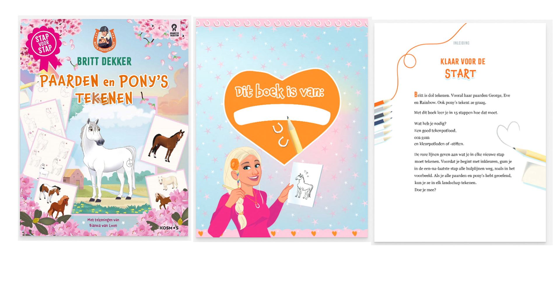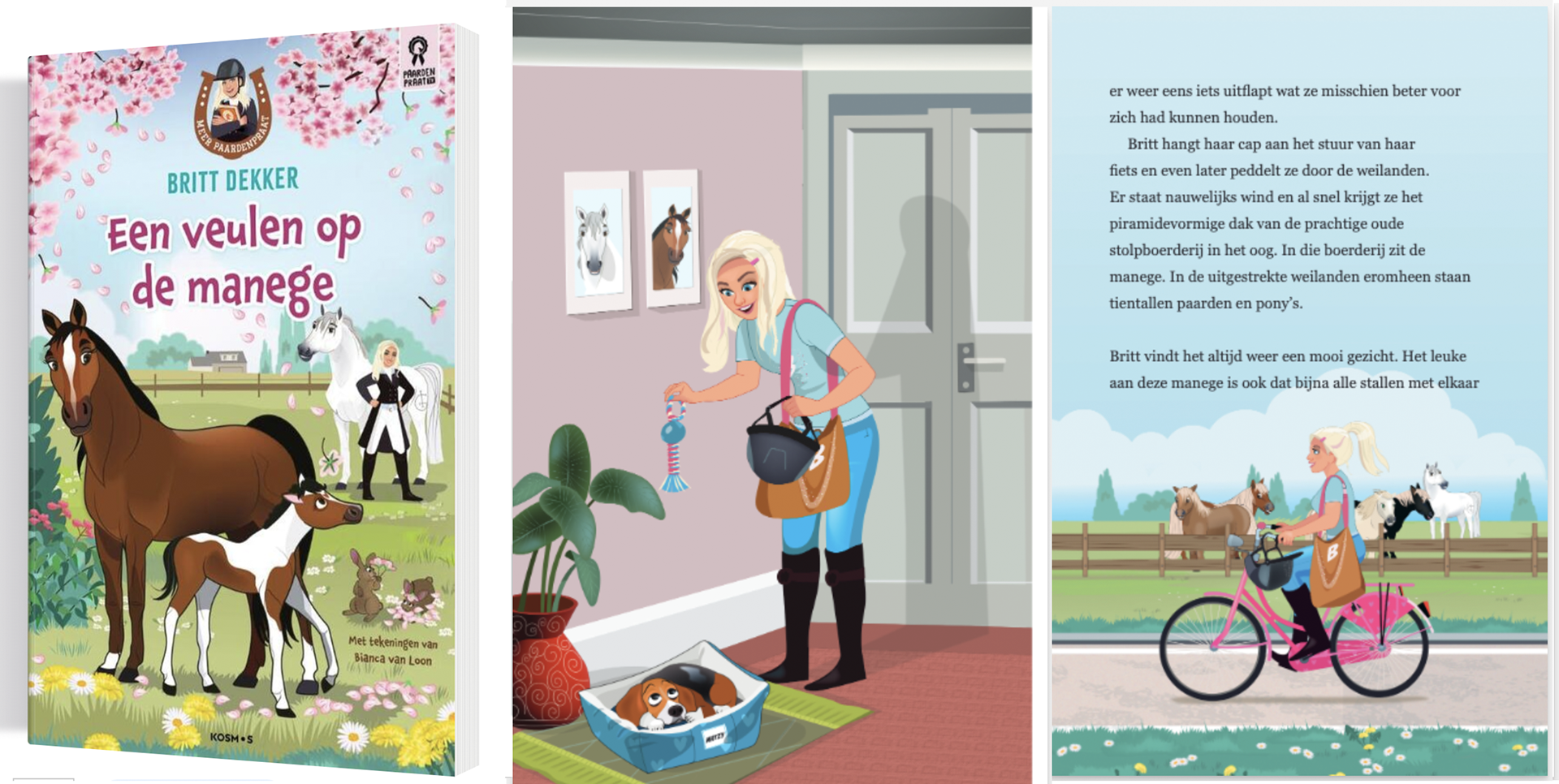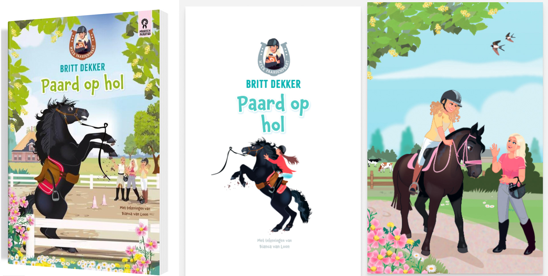 Paardenboekenserie Meer Paardenpraat, Britt Dekker. Cover illustratie, logo en binnenwerk illustraties