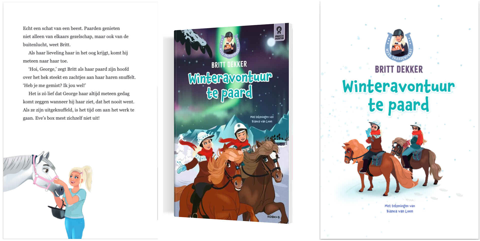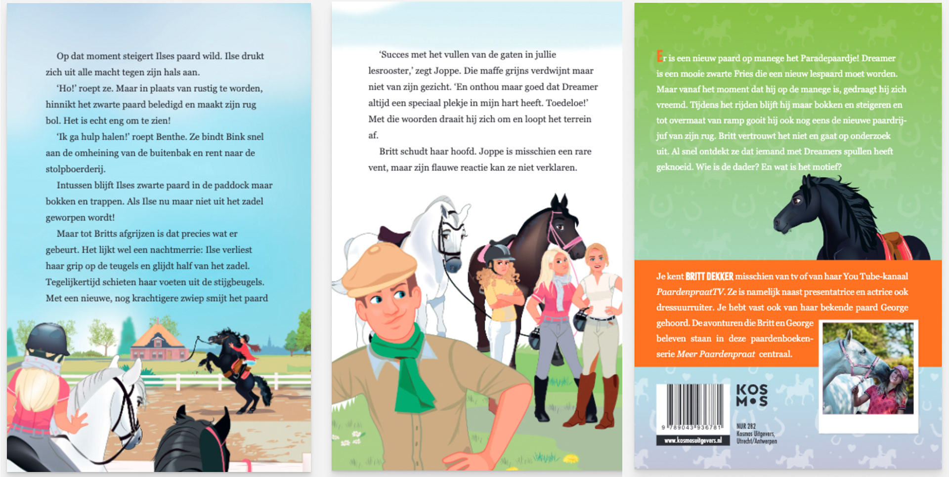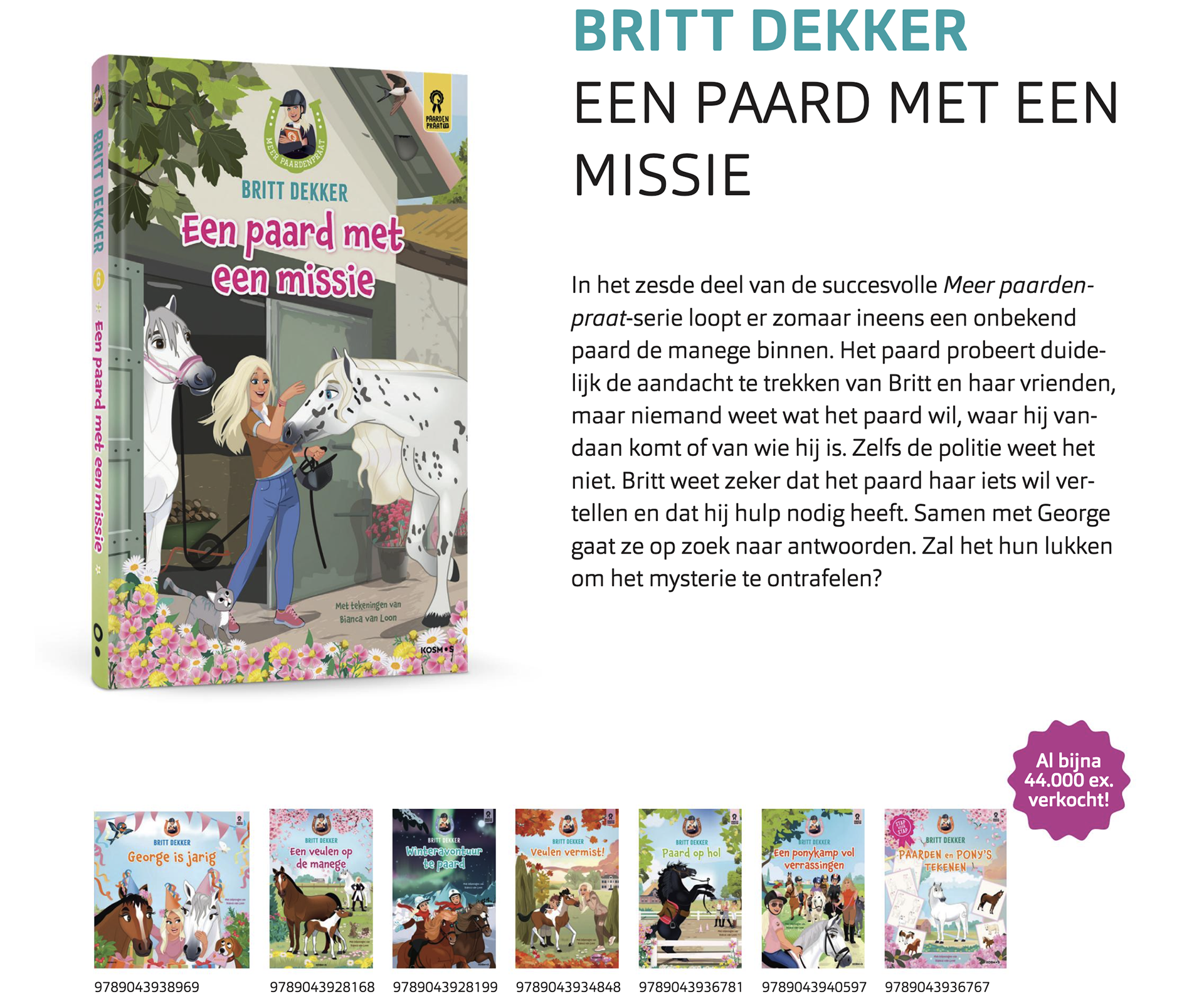 Paardenboekenserie Meer Paardenpraat, Britt Dekker. Cover illustratie, logo en binnenwerk illustraties