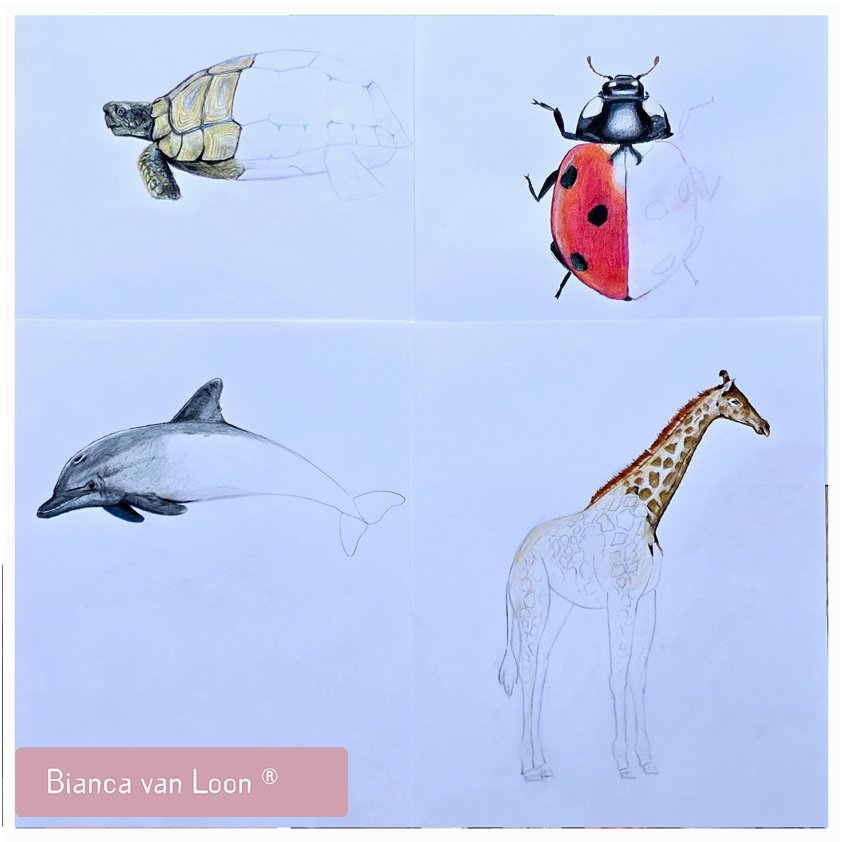 Als alle dieren op papier staan, kleuren we de tekeningen in en vertel ik waarom ieder dier uniek is en wat er zo bijzonder aan dat dier is. Zo wordt het niet alleen een creatieve, maar ook een leerzame ervaring.